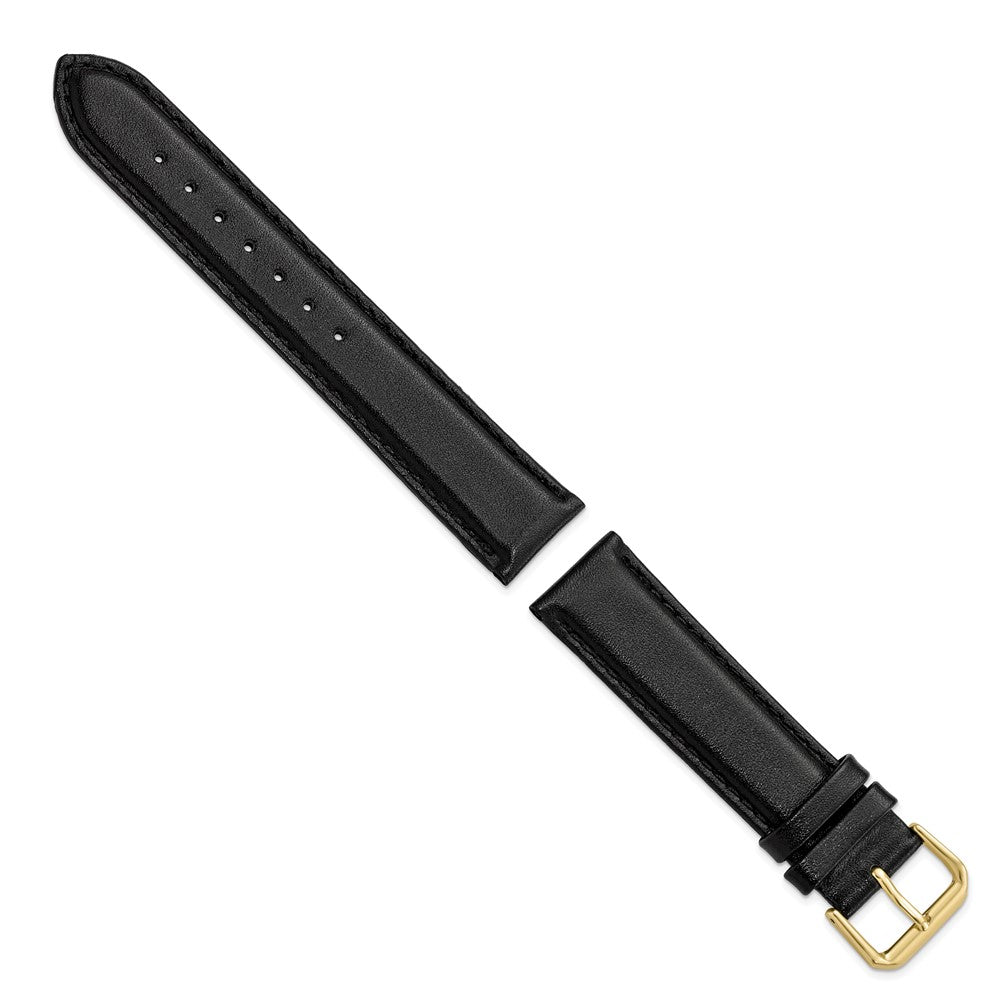 DeBeer 19mm Black Smooth Leather with Gold-tone Buckle 7.5 inch Watch Band