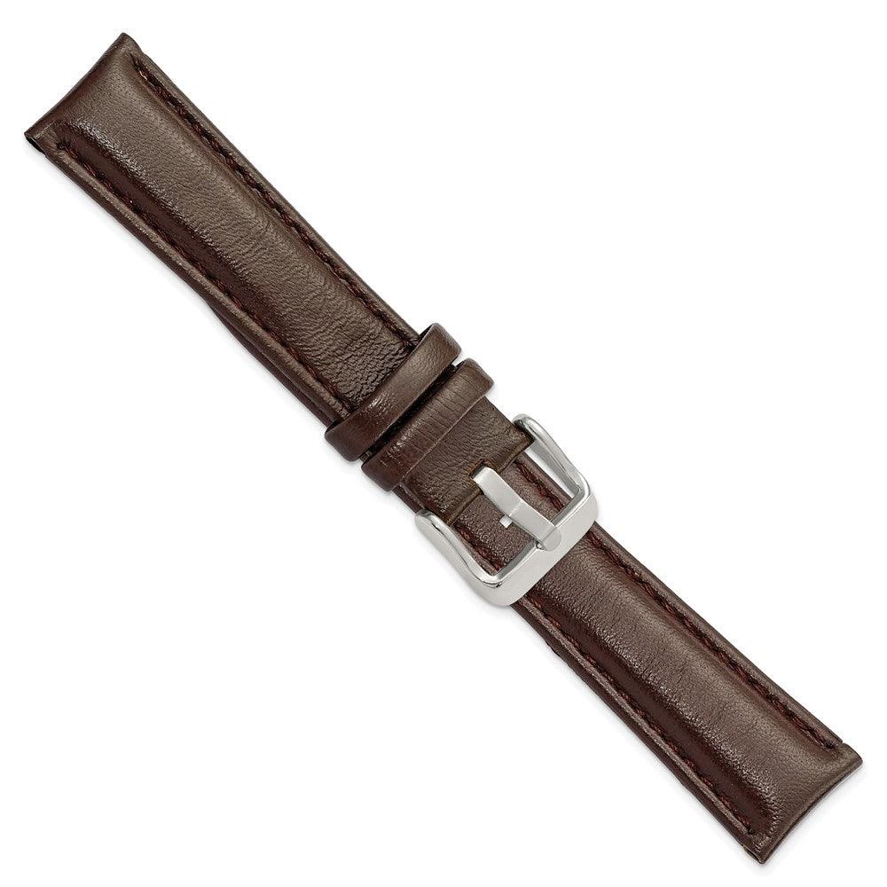DeBeer 19mm Dark Brown Glove Leather with Silver-tone Panerai Style Buckle 7.75 inch Watch Band
