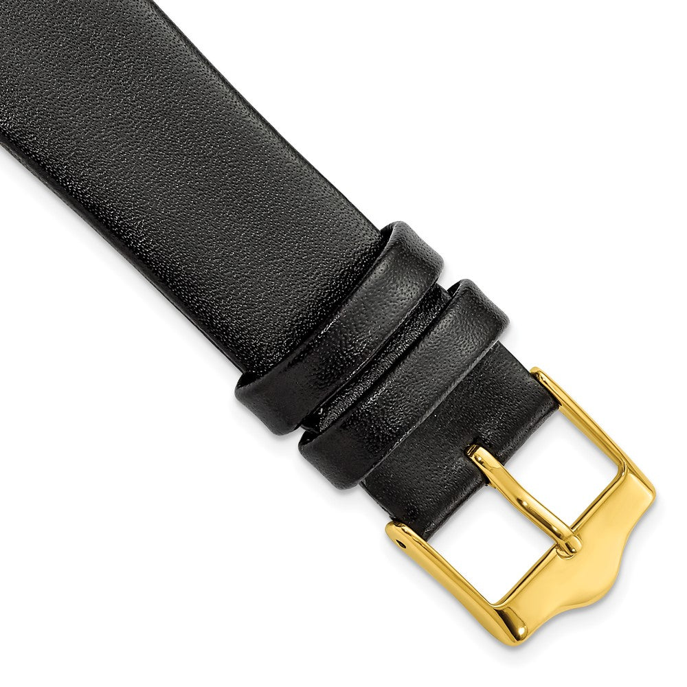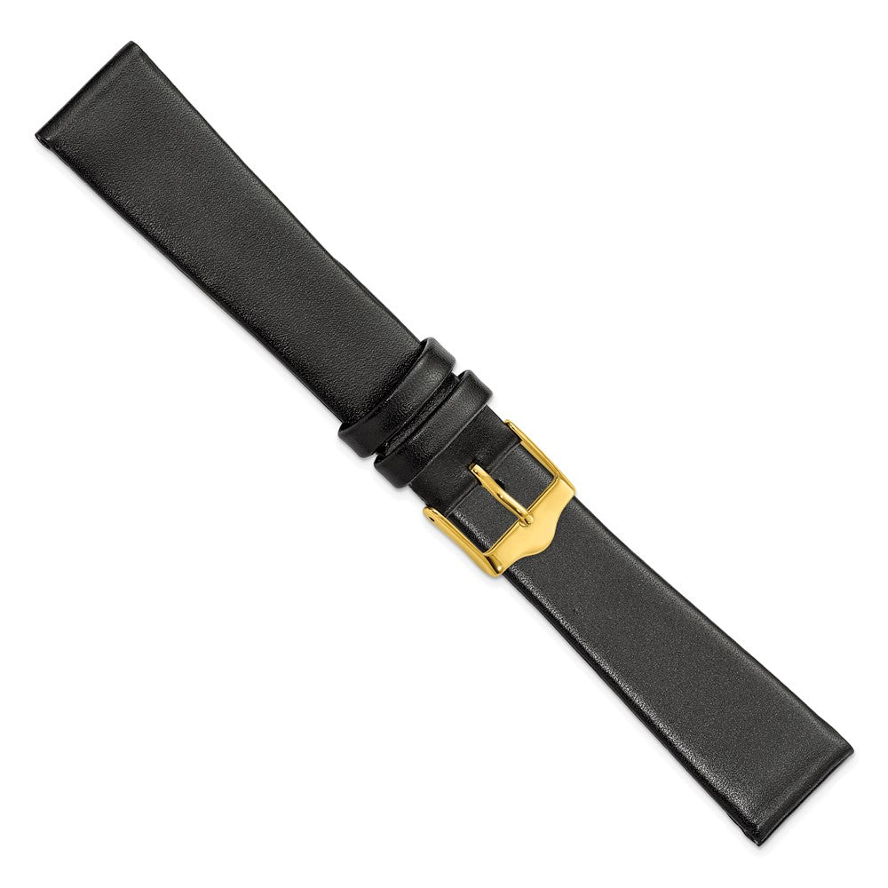DeBeer 20mm Black Long Smooth Flat Leather with Gold-tone Buckle 8.5 inch Watch Band