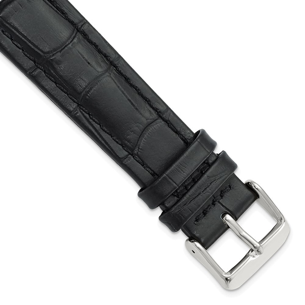 DeBeer 20mm Black Matte Alligator Grain Leather with Silver-tone Buckle 7.5 inch Watch Band