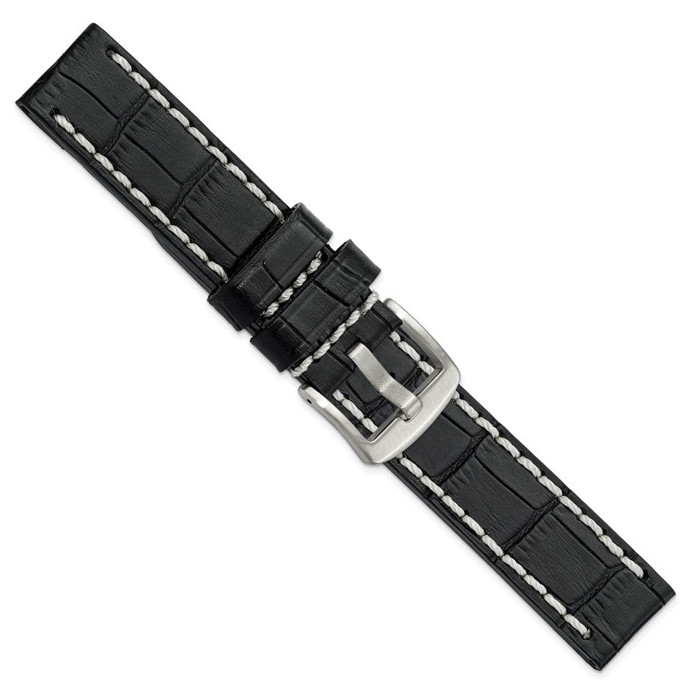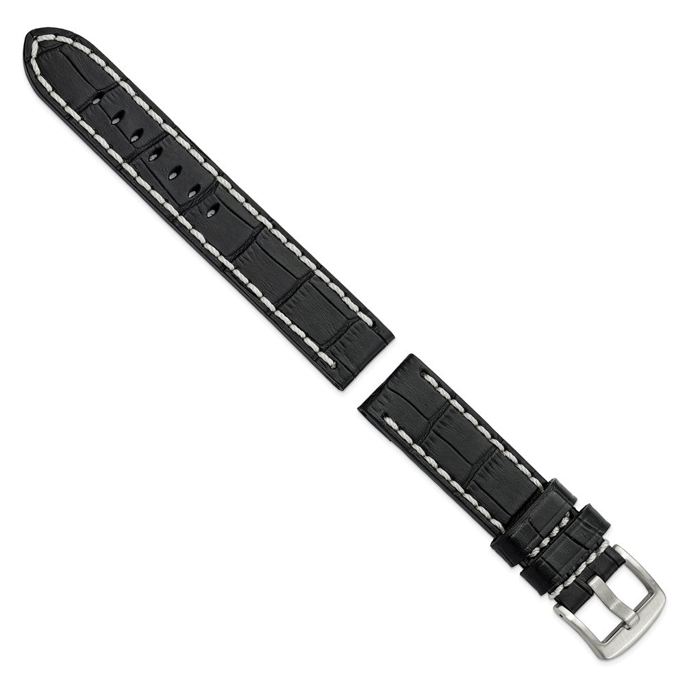 DeBeer 20mm Black Matte Alligator Grain Leather with White Stitching and Silver-tone Panerai Style Buckle 8 inch Watch Band