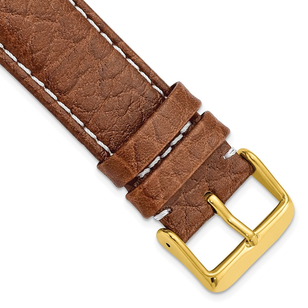 DeBeer 22mm Long Havana Sport Leather with White Stitching and Gold-tone Buckle 8.5 inch Watch Band
