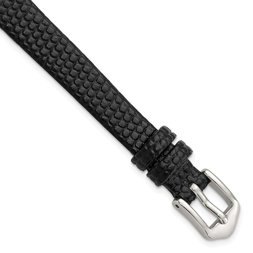 Gilden 10mm Black Flat Lizard Grain Calfskin Leather with Silver-tone Aluminum Buckle 6.75 inch Watch Band