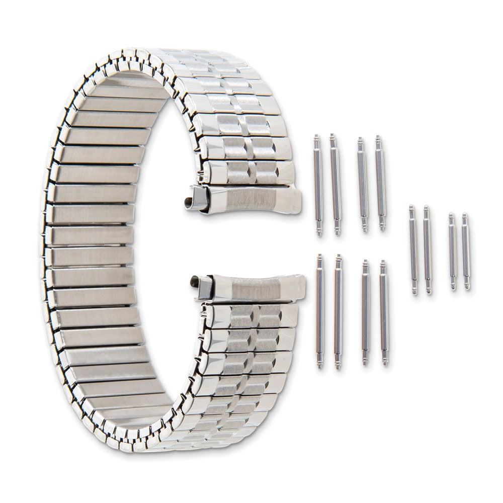 Gilden Mens 18-22mm Satin and Polished Curved-End Stainless Steel 6.75 inch Expansion Watch Band