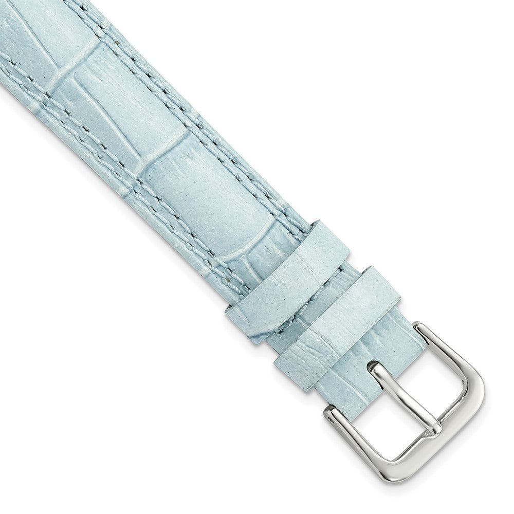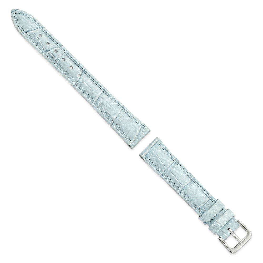 Gilden 16mm Pale Blue Padded Gator Grain Calfskin Leather with Silver-tone Aluminum Buckle 7.5 inch Watch Band