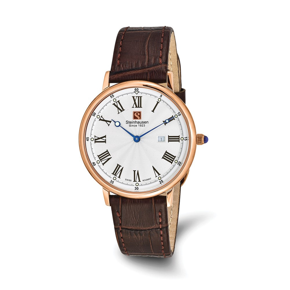Steinhausen Altdorf Rose IP-plated Stainless Steel White Flinque Dial with Brown Leather Quick Release Band Watch