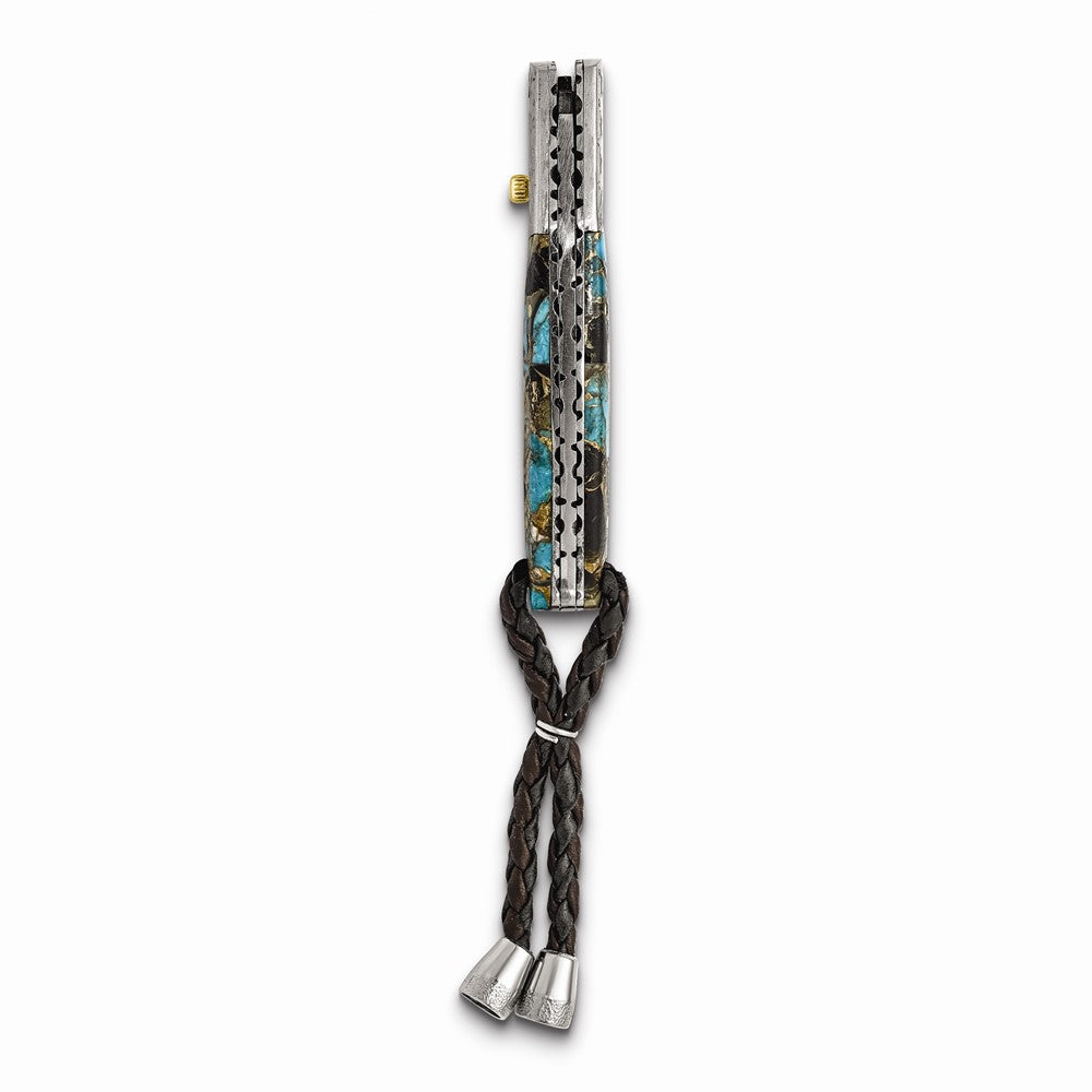 Luxury Giftware Damascus Steel 256 Layer Folding Blade Turquoise/Abalone/Obsidian/Bronze Handle Knife with Leather Sheath and Wooden Gift Box