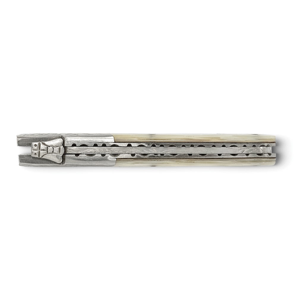 Luxury Giftware Damascus Steel 256 Layer Mother of Pearl Handlel with Steel Guard Folding Knife with Leather Sheath and Wooden Gift Box