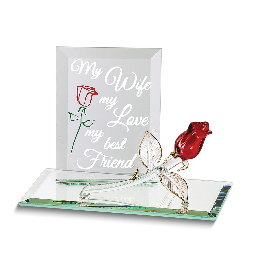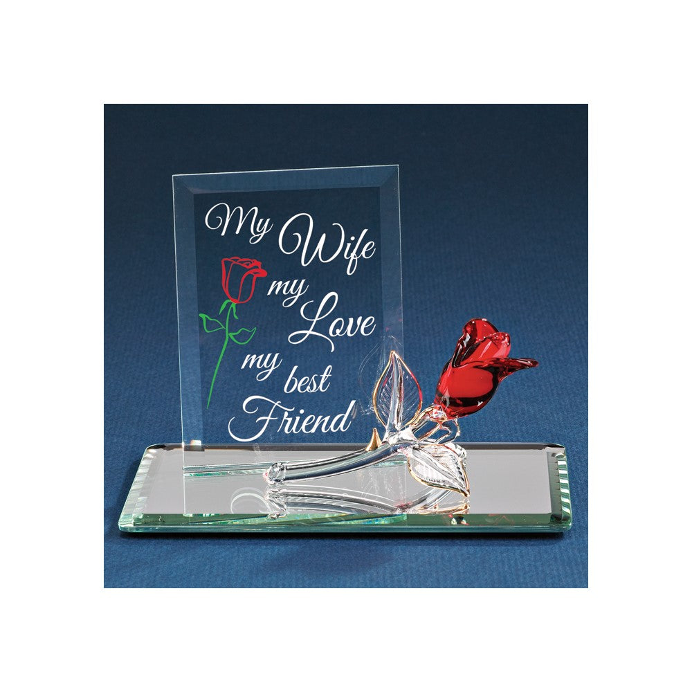 MY WIFE MY LOVE MY BEST FRIEND Red Rose Handcrafted Glass Figurine