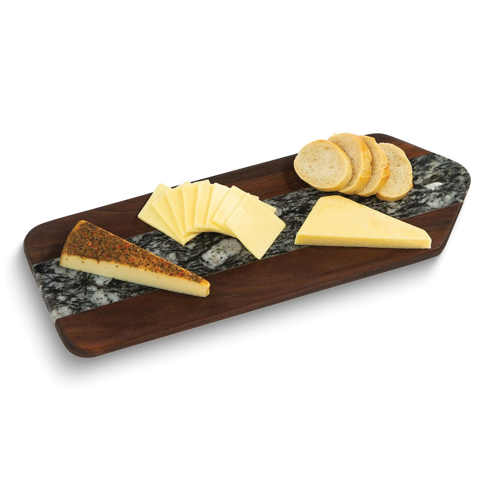 Tegan Carbonized Acacia Wood and Black/White Marble Serving Board