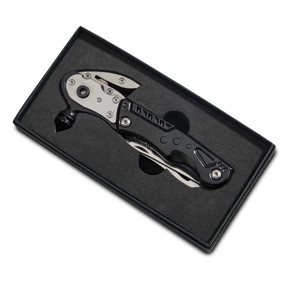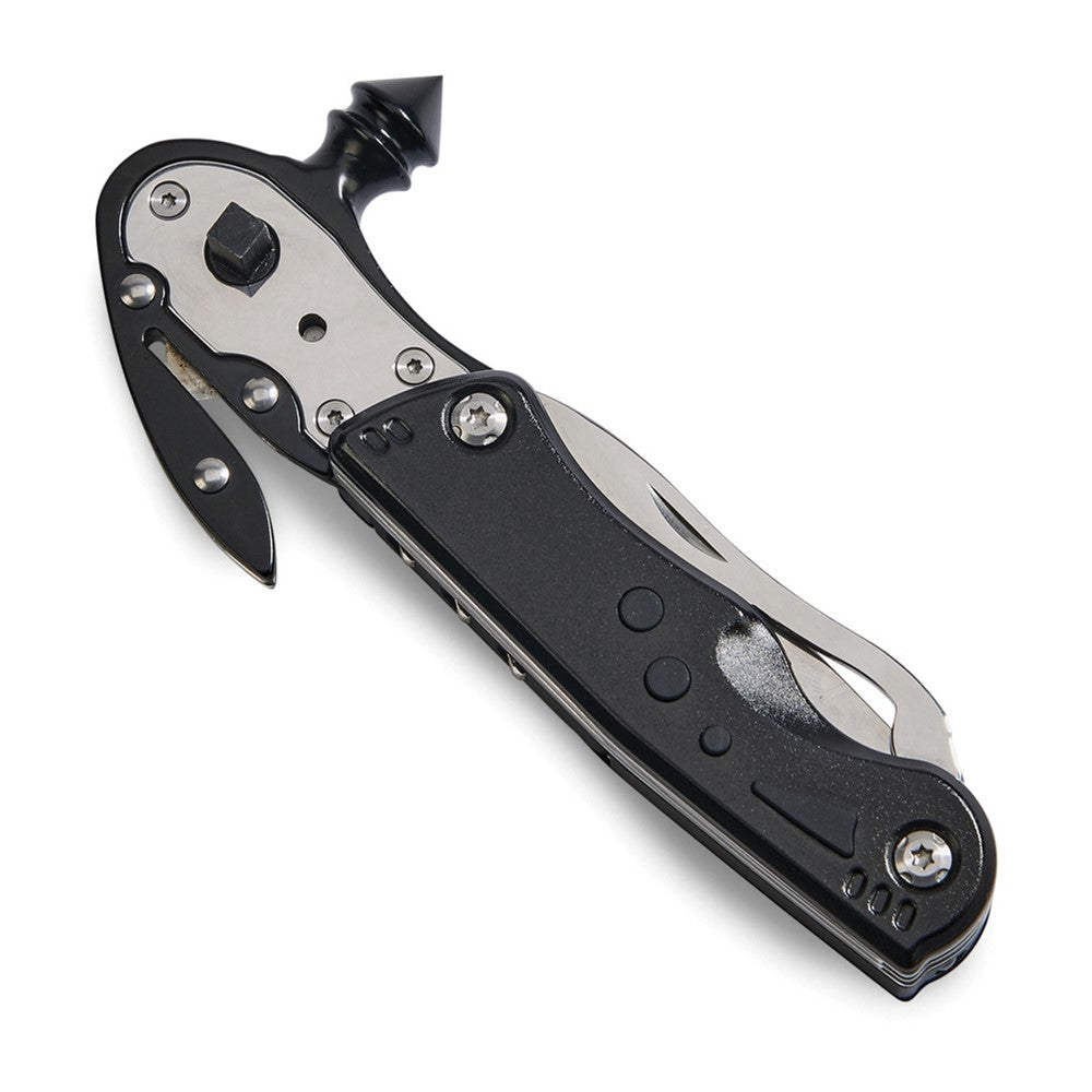 Black Glass Breaker/Seat Belt Cutter/Ratchet Driver with 3 Bits/Knife/Saw/Bottle Opener/Wrench and LED Light Multi-Tool