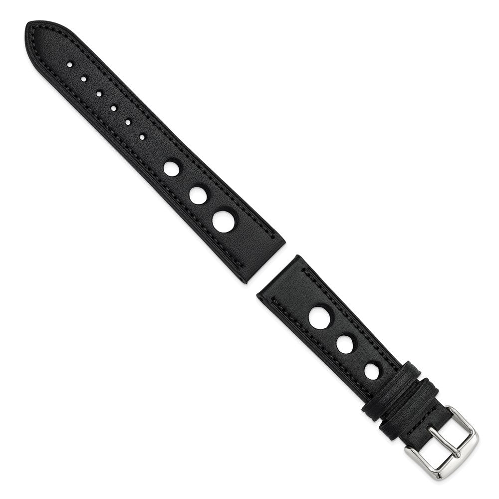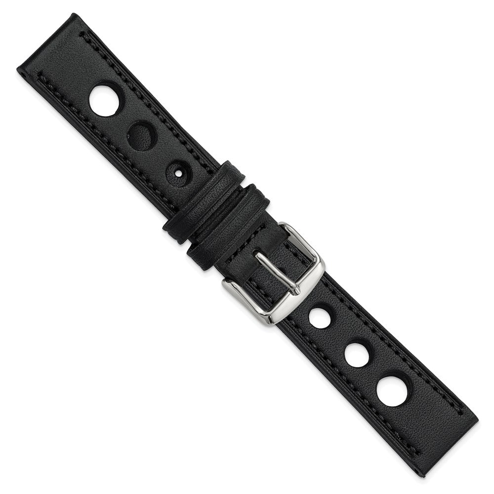 DeBeer 20mm Black Grand Prix Leather with Black Stitching and Silver-tone Buckle 7.5 inch Watch Band