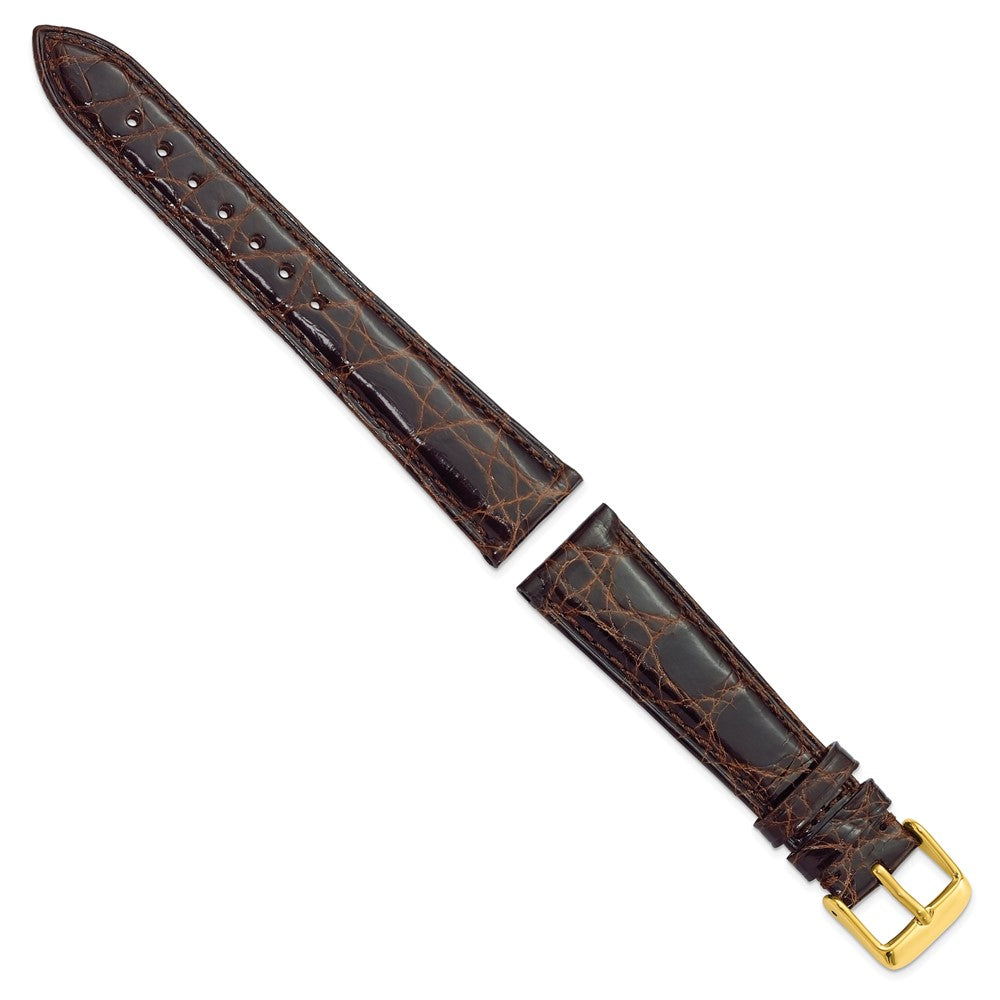 DeBeer 20mm Dark Brown Genuine Caiman Leather with Gold-tone Buckle 7.5 inch Watch Band