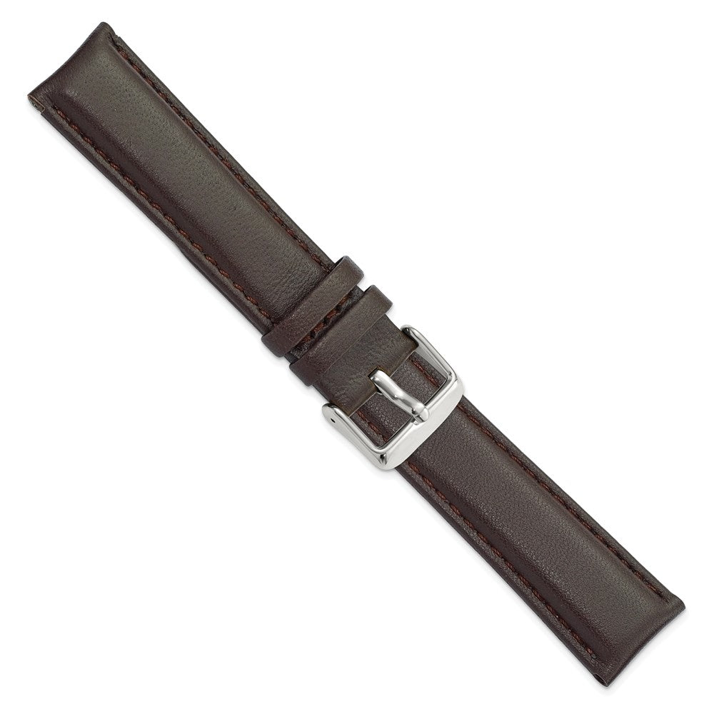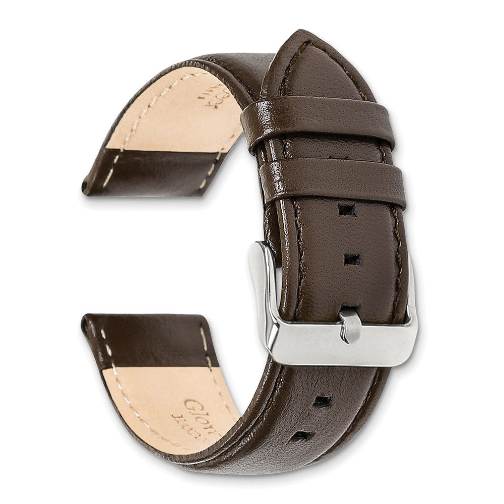 DeBeer 20mm Dark Brown Glove Leather with Silver-tone Panerai Style Buckle 7.75 inch Watch Band