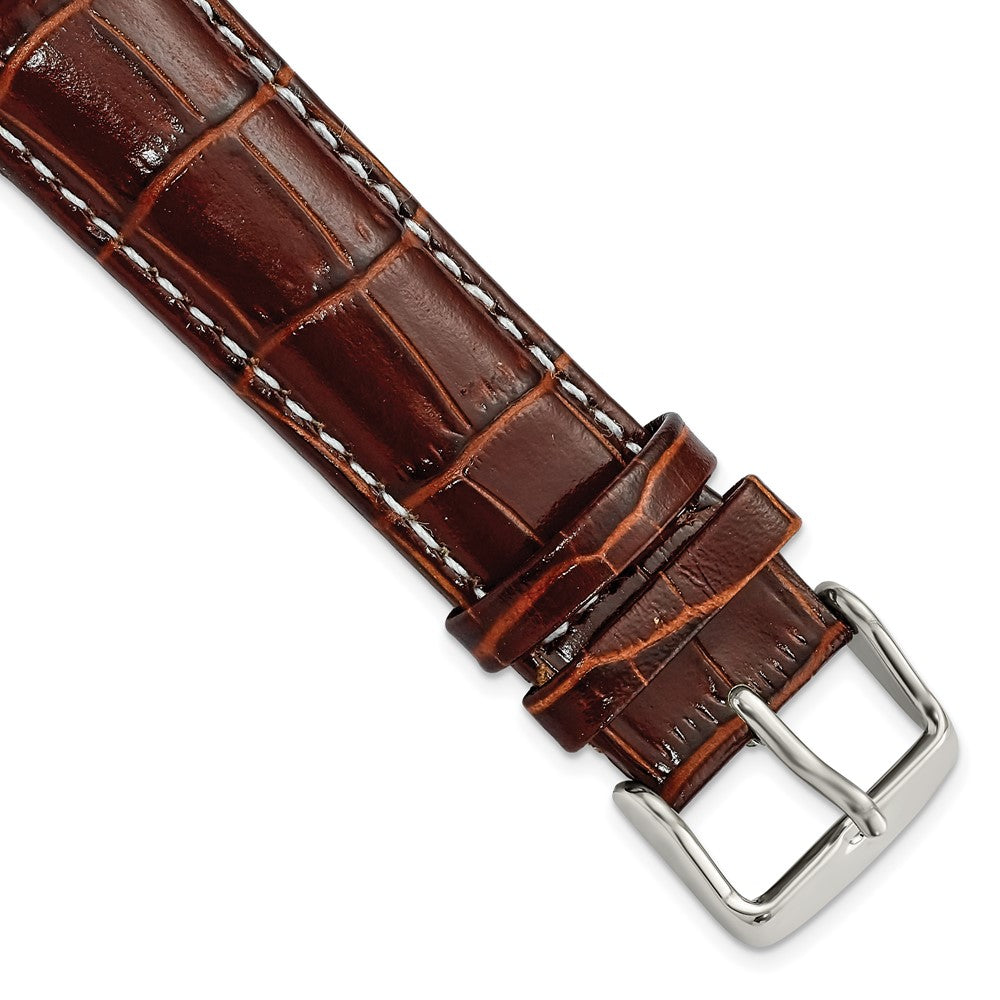 DeBeer 20mm Havana Crocodile Grain Chronograph Leather with White Stitching and Silver-tone Buckle 7.5 inch Watch Band