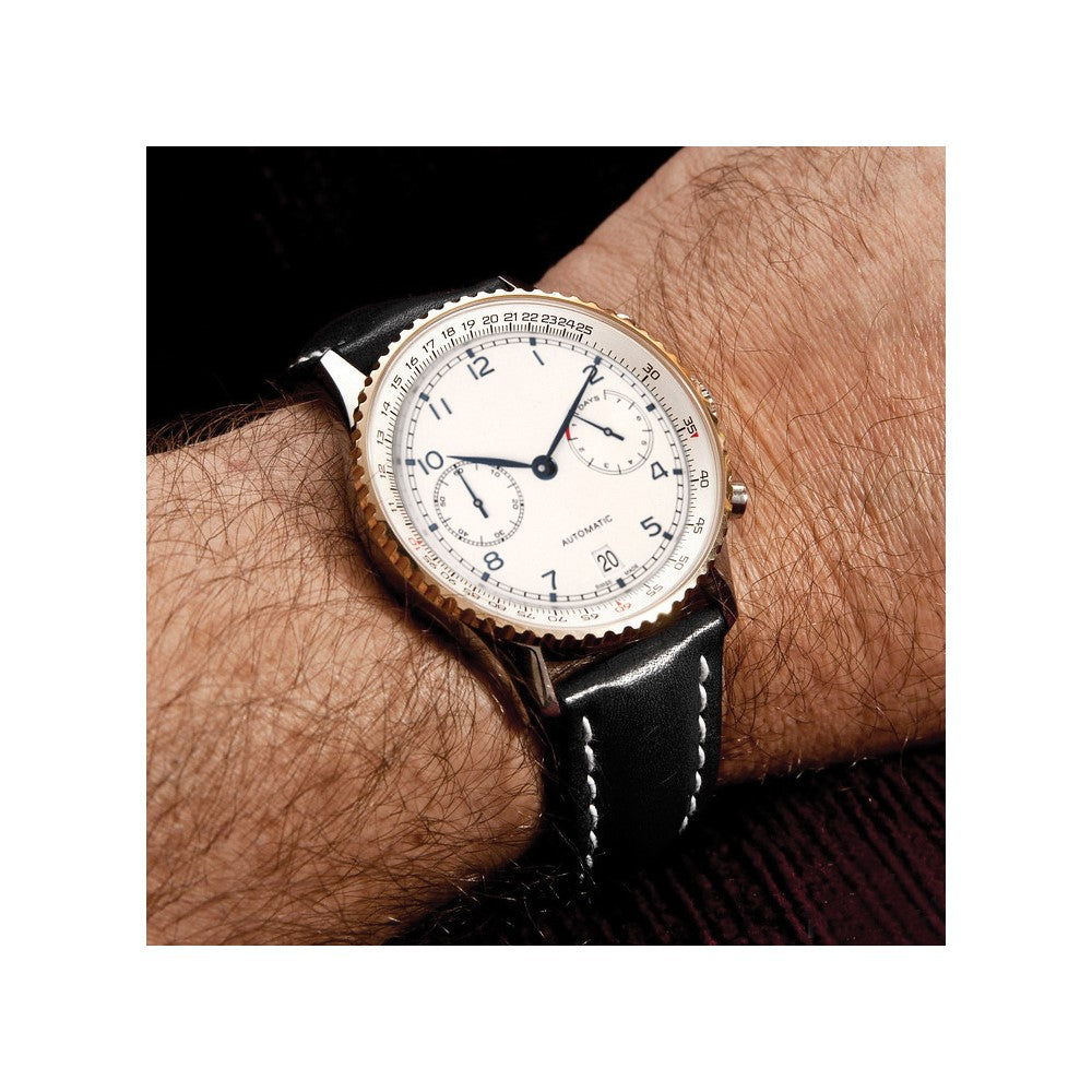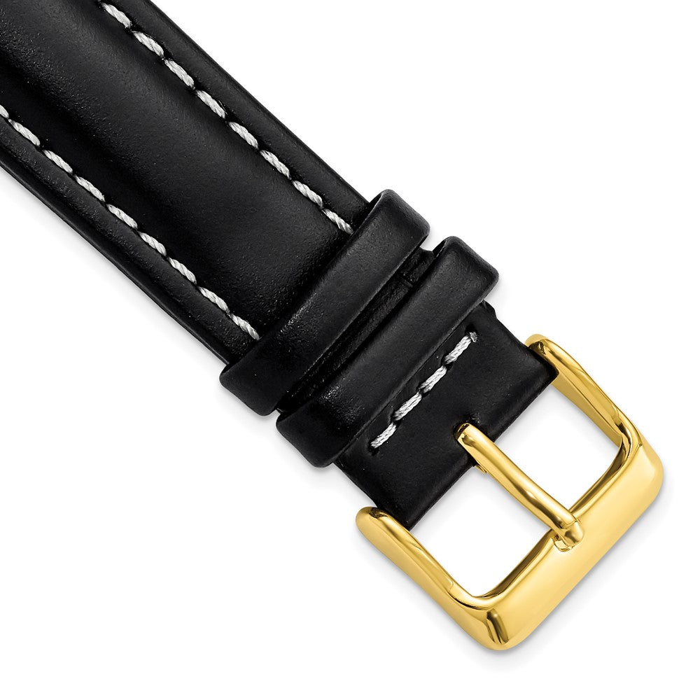 DeBeer 20mm Long Black Oil-tanned Leather with White Stitching and Gold-tone Buckle 8.25 inch Watch Band
