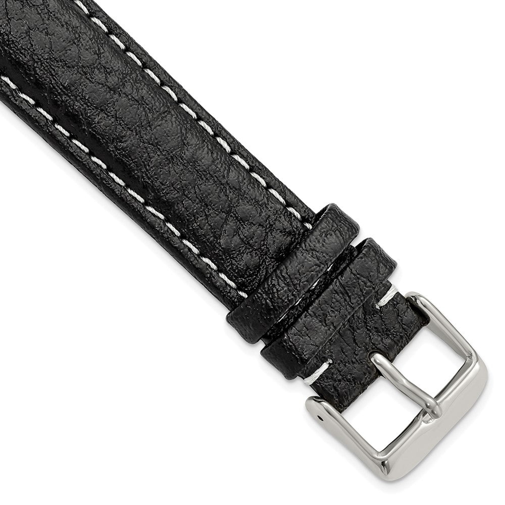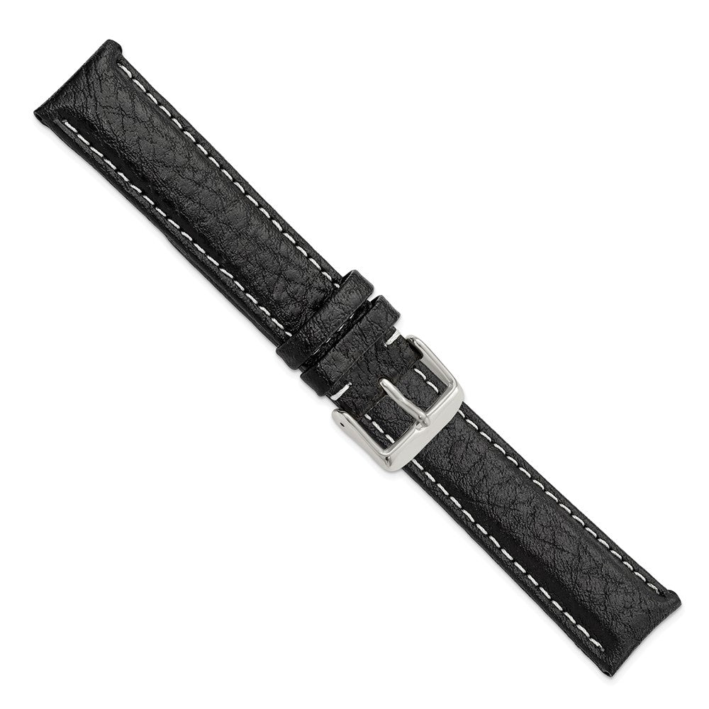 DeBeer 20mm Long Black Sport Leather with White Stitching and Silver-tone Buckle 8.5 inch Watch Band