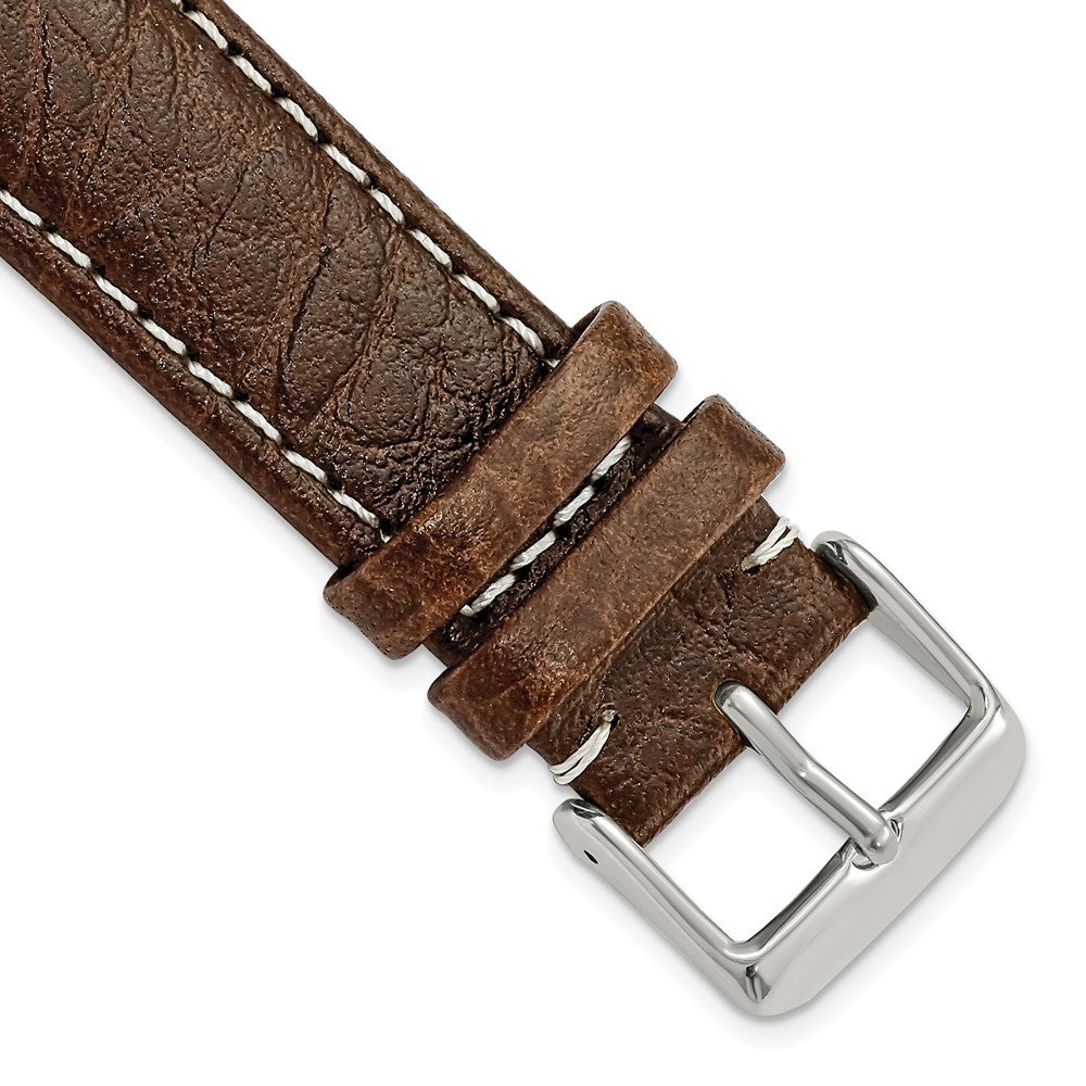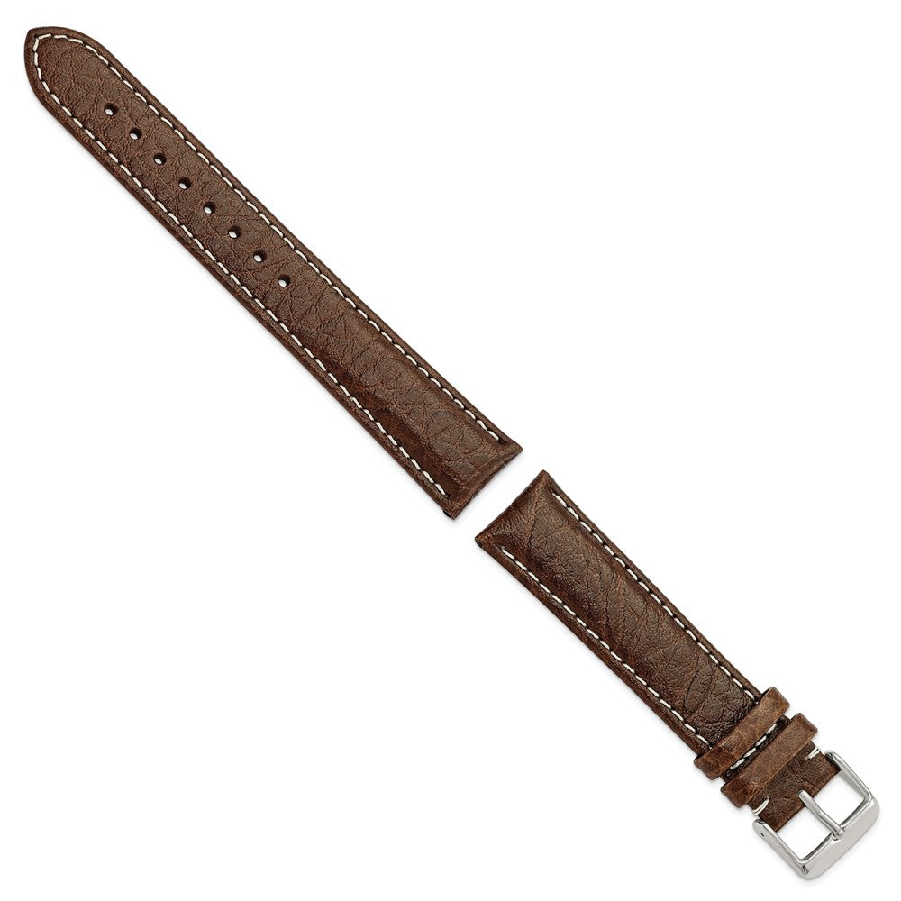 DeBeer 20mm Long Dark Brown Leather with White Stitching and Silver-tone Buckle 8.5 inch Watch Band