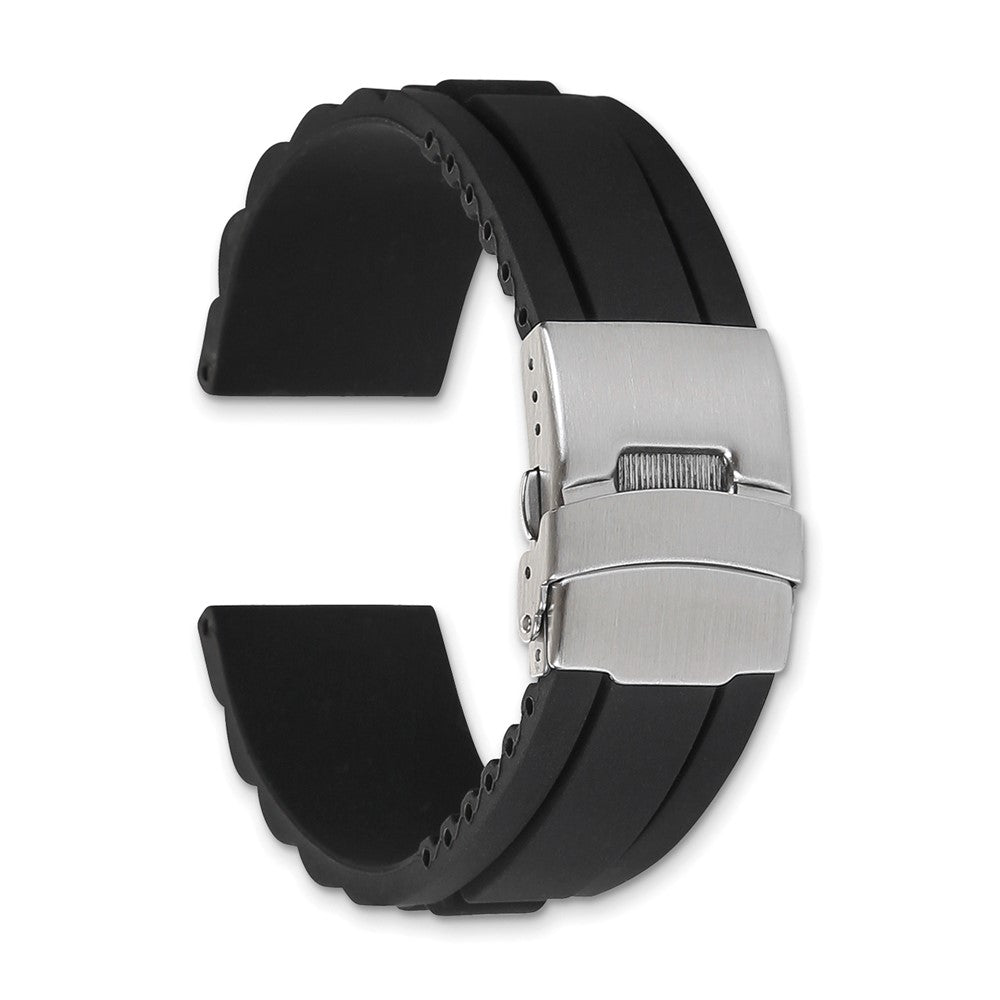 DeBeer 20mm Oyster Style Black Link Design Silicone Rubber with Brushed Stainless Steel Deployment Buckle 7.5 inch Watch Band
