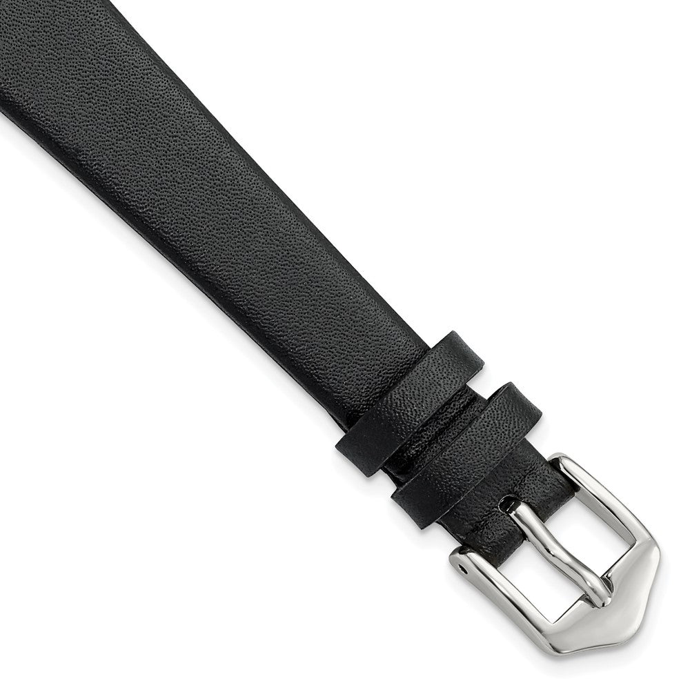 Gilden 14mm Black Classic Calfskin Leather with Silver-tone Aluminum Buckle 6.6 inch Watch Band