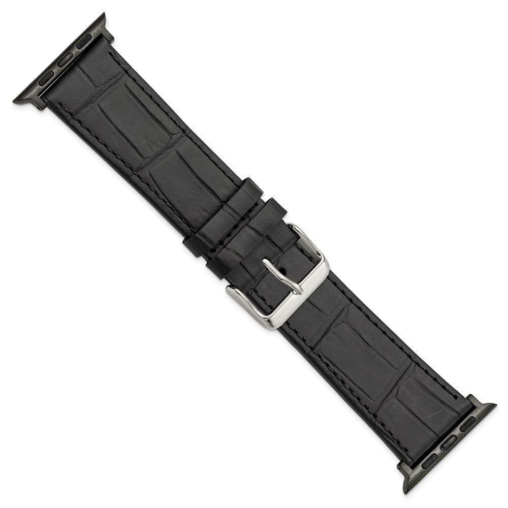 Gilden for Apple 42/44mm Smart Watch Black Gator Grain Calfskin Leather with Black Adapters and Stainless Steel Buckle 7.5 inch