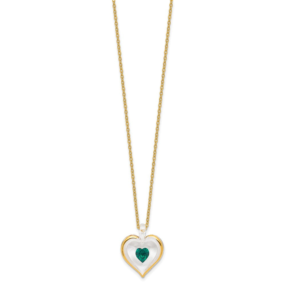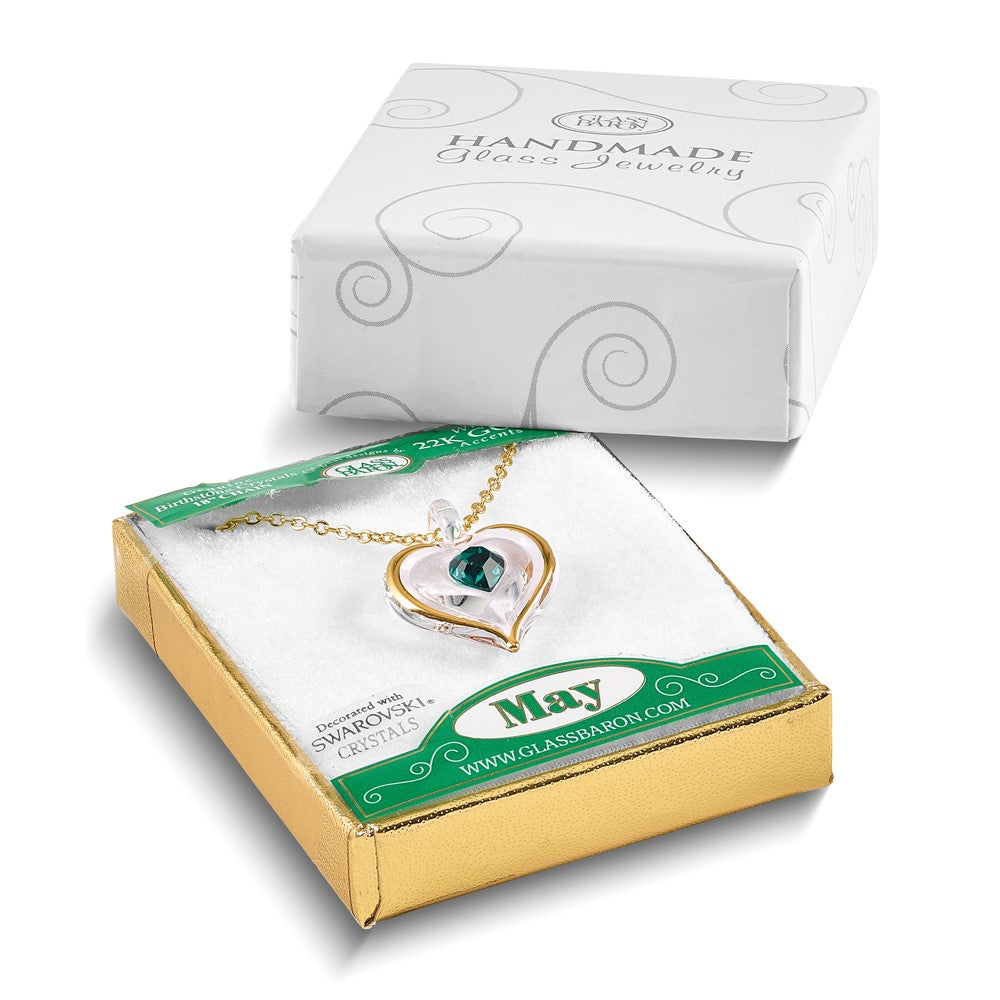Glass Baron 22K Accent Gilding Gold-trim Glass with Green May Birthstone Crystal from Swarovski Heart 18 inch Gold-tone Necklace