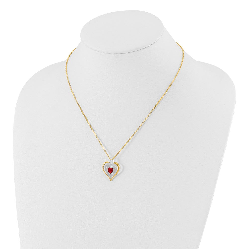 Glass Baron 22K Accent Gilding Gold-trim Glass with Red July Birthstone Crystal Heart 18 inch Gold-tone Necklace