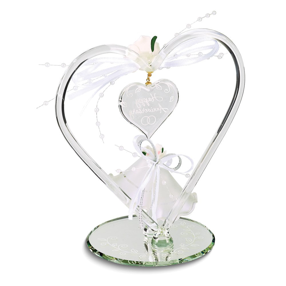 HAPPY ANNIVERSARY Heart and Bells Handcrafted Glass Figurine with Ribbon