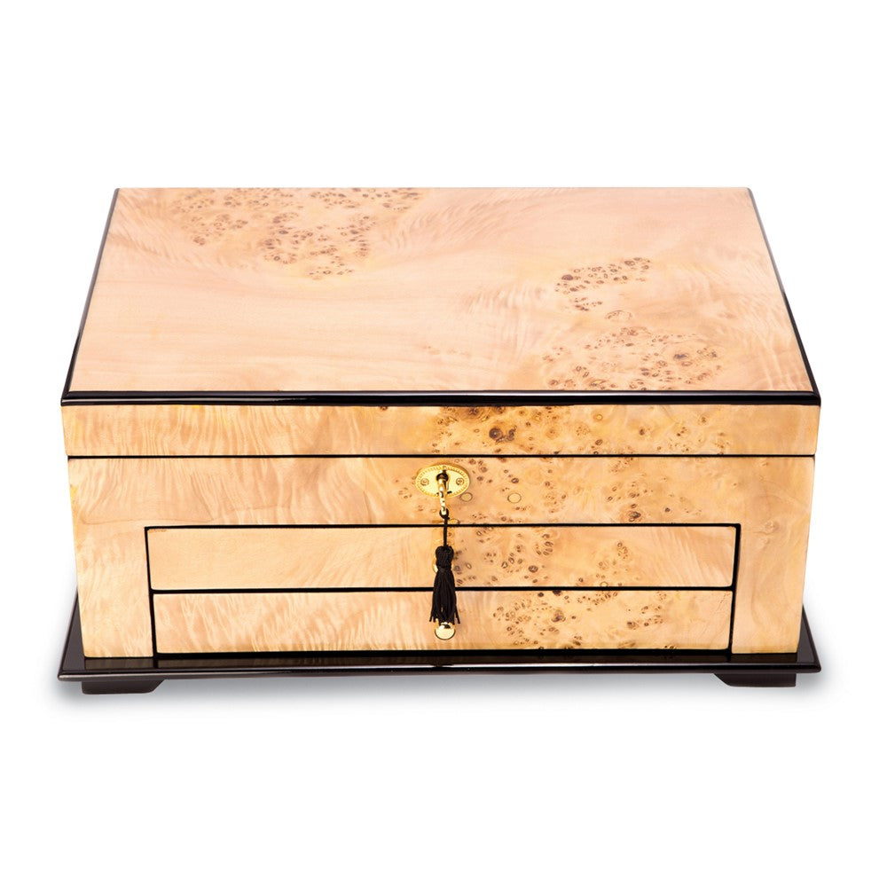 Birdseye Maple Lacquered Wood 3 Level Jewelry Box