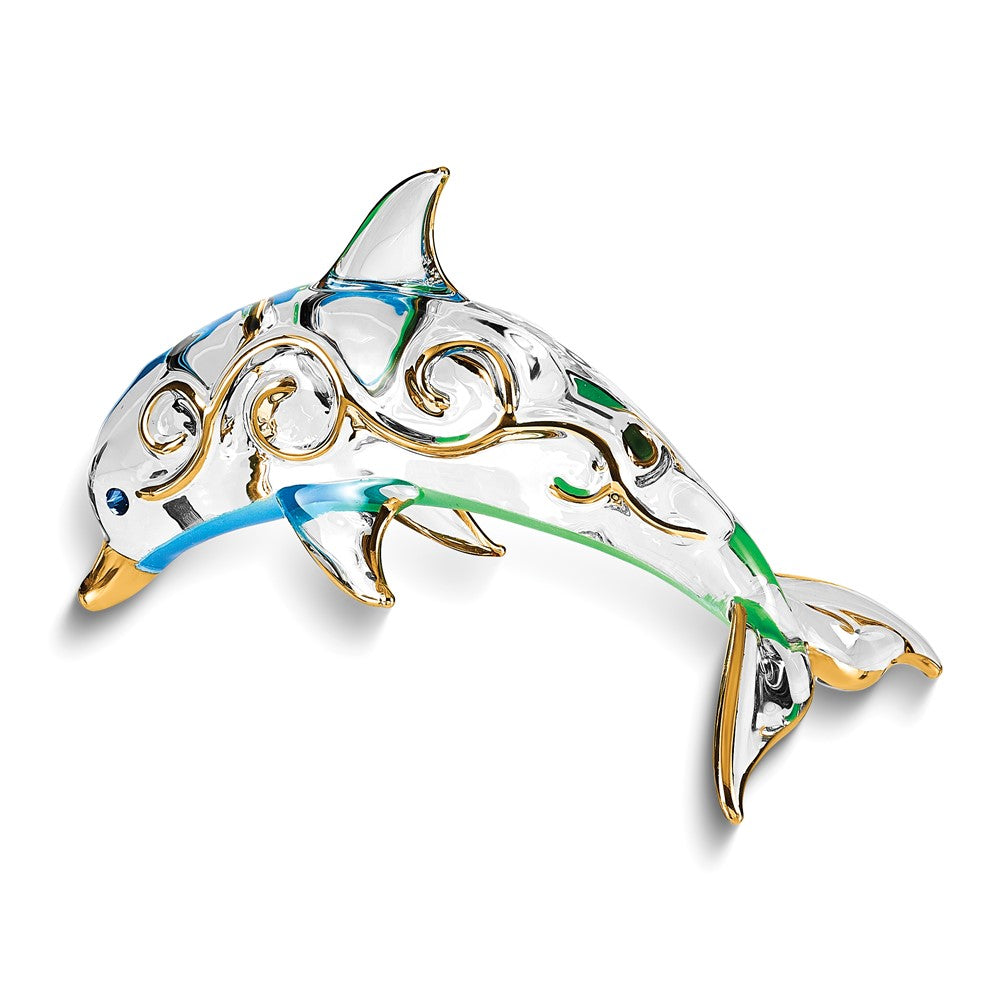 Paradise Dolphin Handcrafted Glass Figurine with 22k Gold Trim