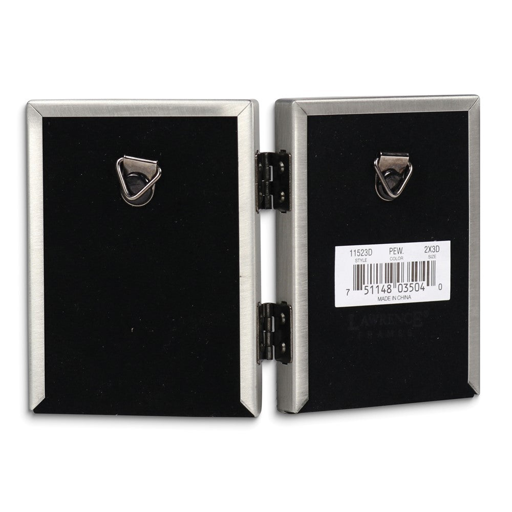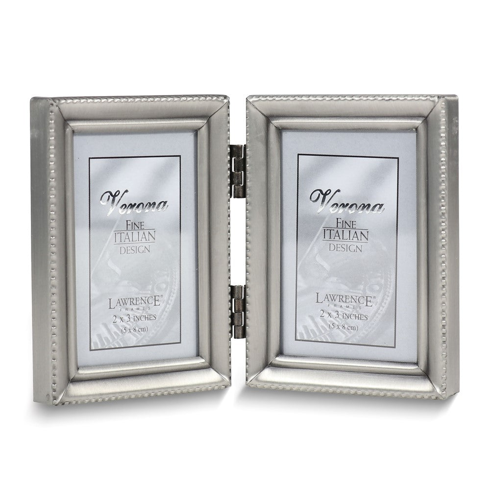 Pewter Portrait Hinged Brushed and Beaded 2x3 Double Photo Frame