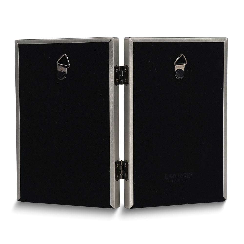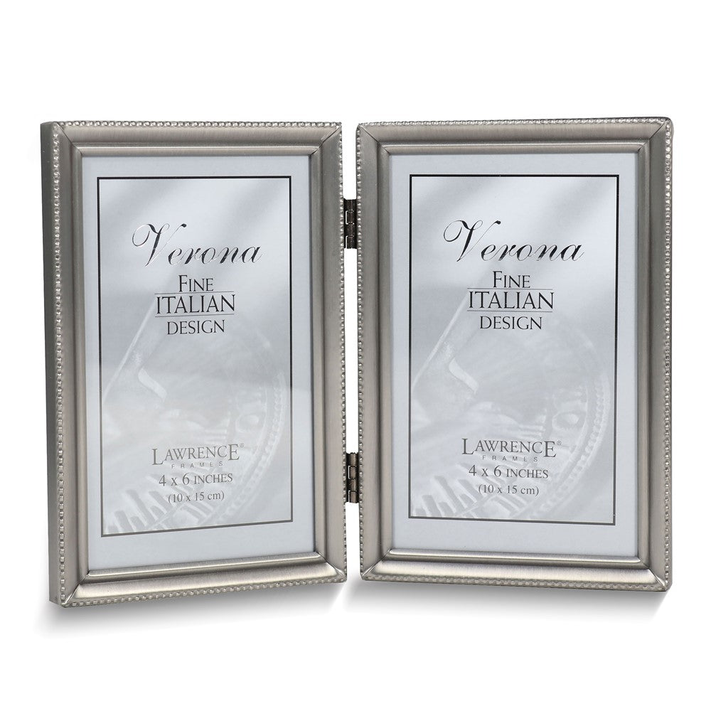 Pewter Portrait Hinged Brushed and Beaded 4x6 Double Photo Frame