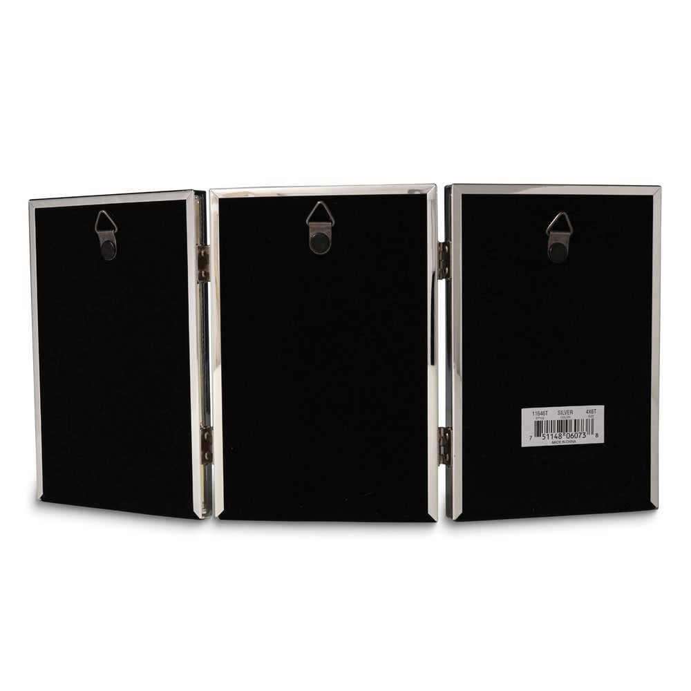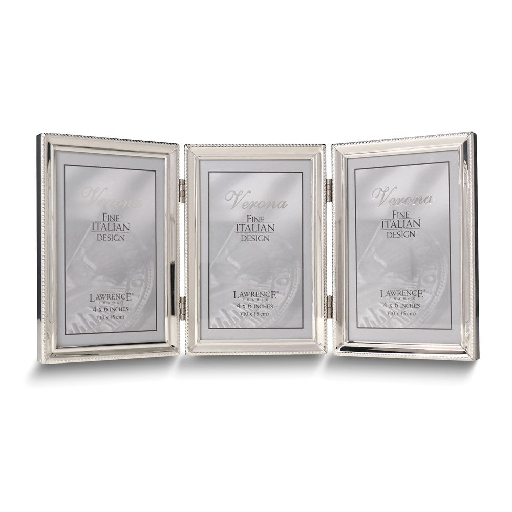 Polished Silver-plated 4x6 Portrait Hinged Triple Frame - Bead Border Design