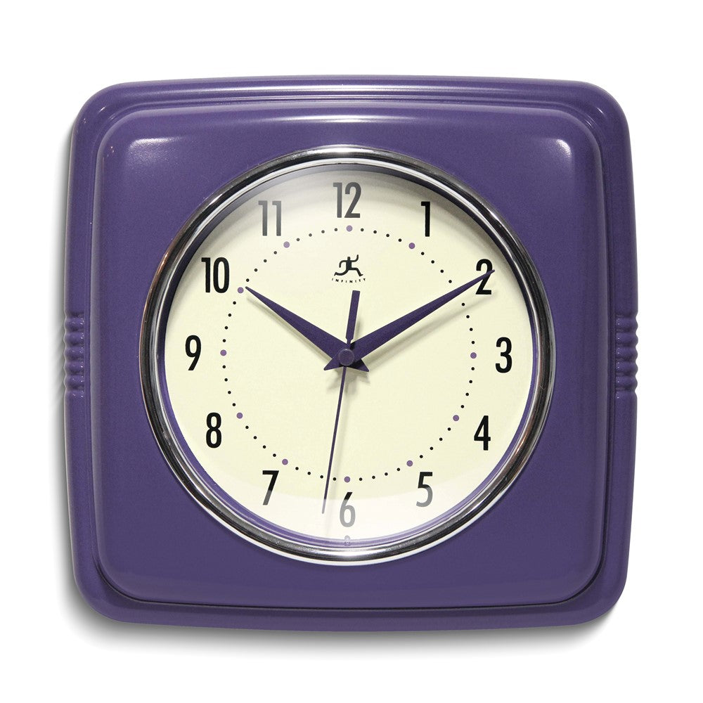 Square Retro Purple Finish Metal Quartz Wall Clock with Silent Movement