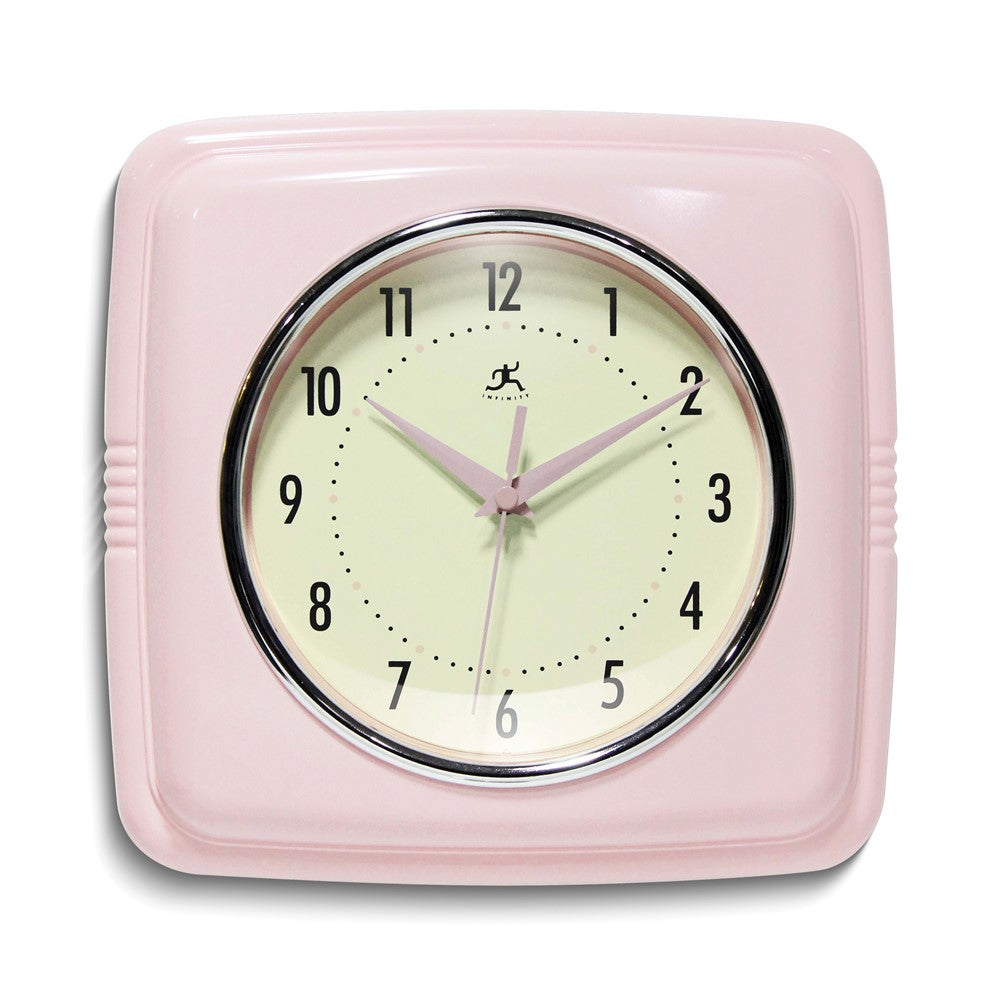 Square Retro Rose Blush Finish Metal Quartz Wall Clock with Silent Movement