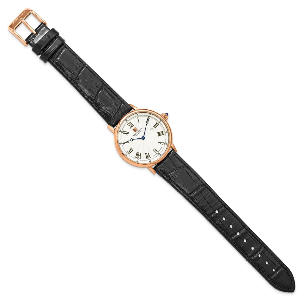 Steinhausen Altdorf Rose IP-plated Stainless Steel White Flinque Dial with Black Leather Quick Release Band Watch