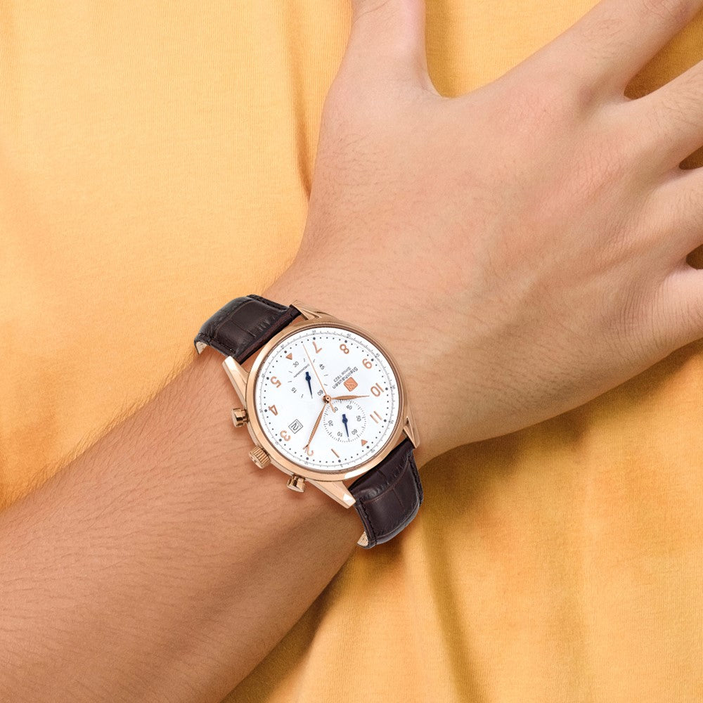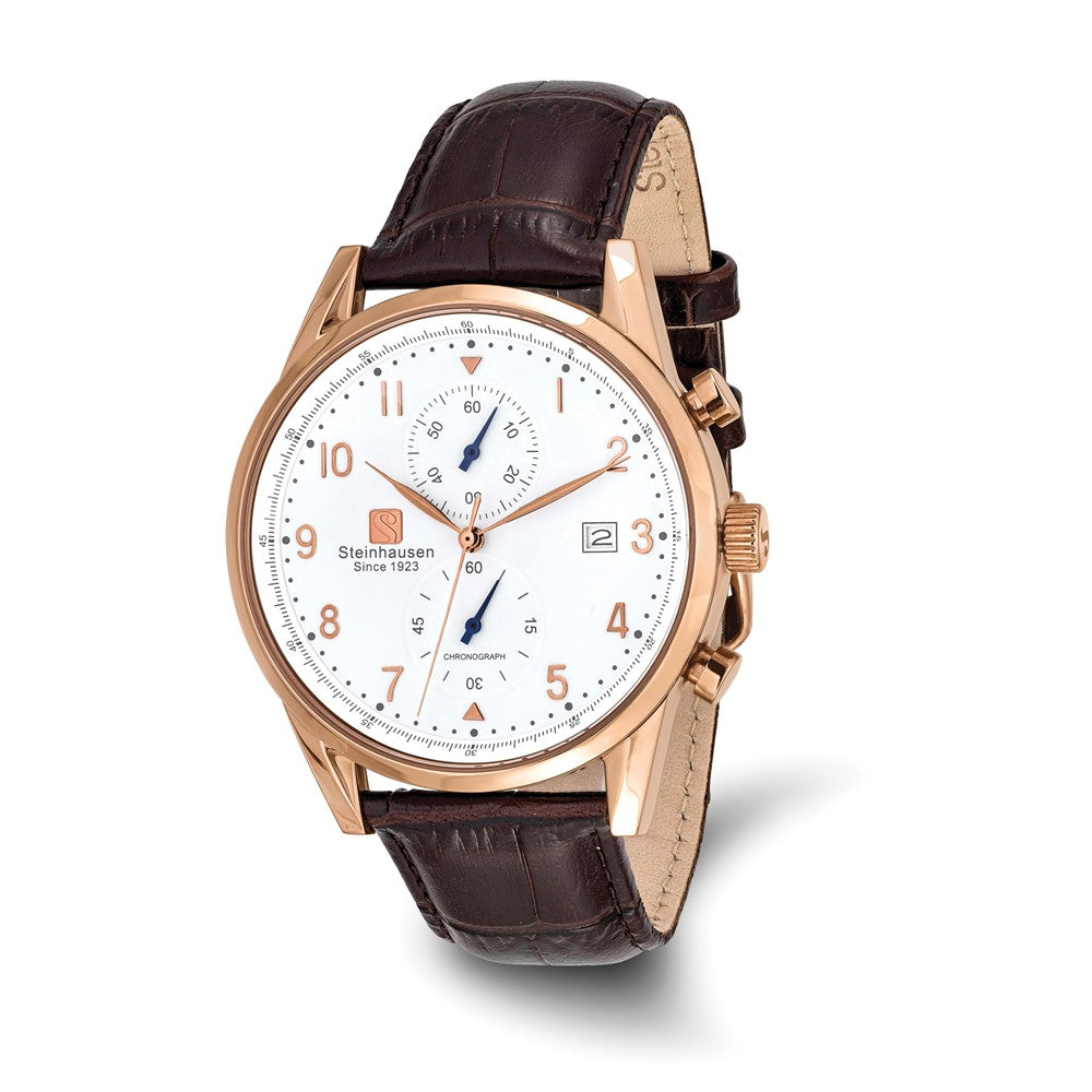 Steinhausen Lugano Rose IP-plated Stainless Steel White Dial Chronograph with Black Leather Quick Release Band Watch